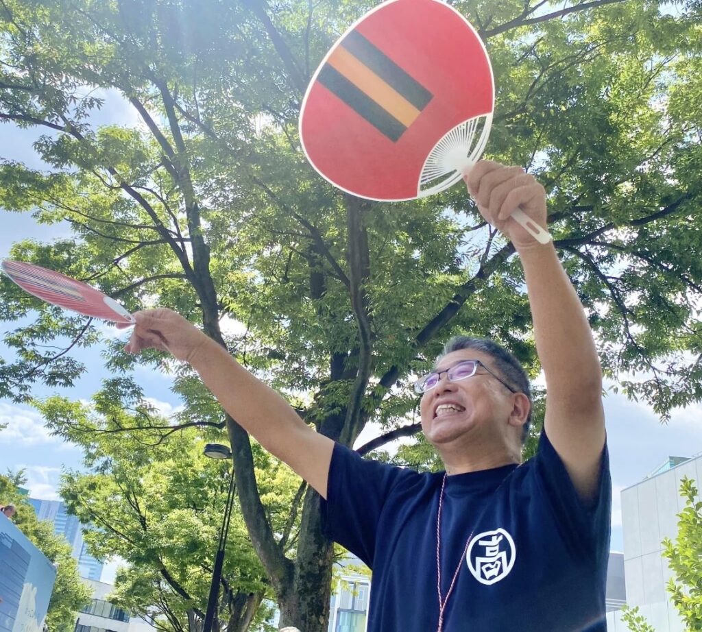 あちこちで配られるうちわを手にして、それを演舞する踊り子さんの方に向けたら、反応がすごく笑顔になって返ってきたそうです。