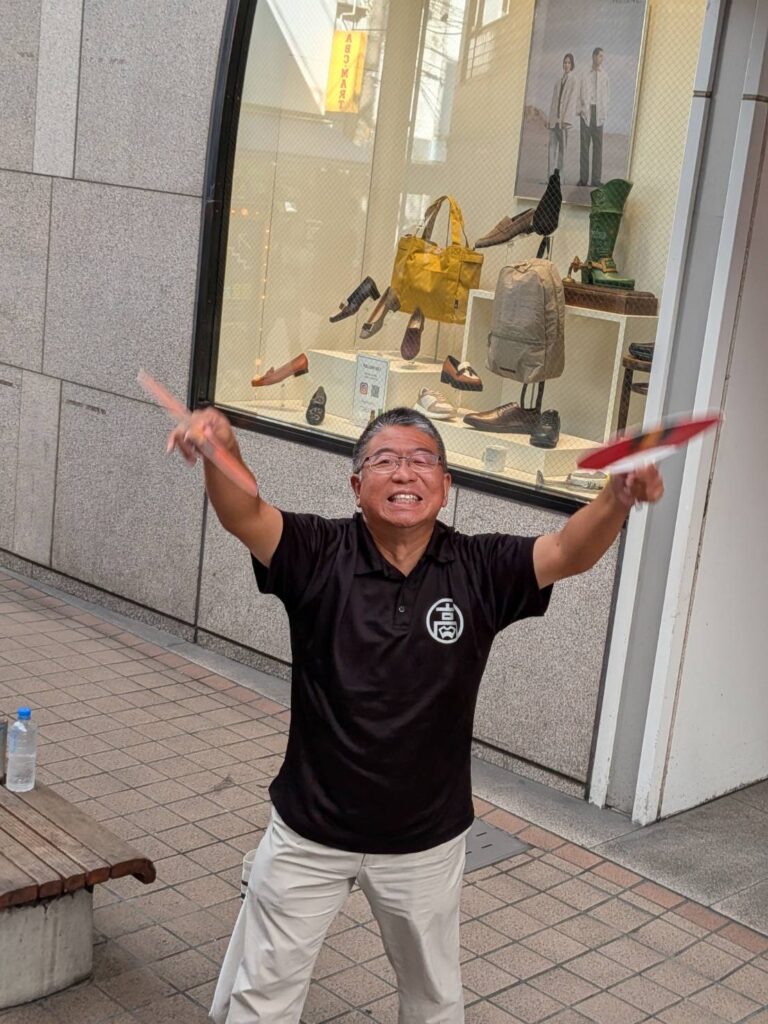 長かった帯屋町演舞場を踊りきる手前で、演舞したチームの皆さま方やそこで観覧された方は、きっと「うちわおじさん」の中平さんから沢山の元気をもらっていることでしょう。